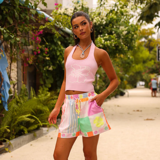 Calções com cordão - Hibiscus Rainbow