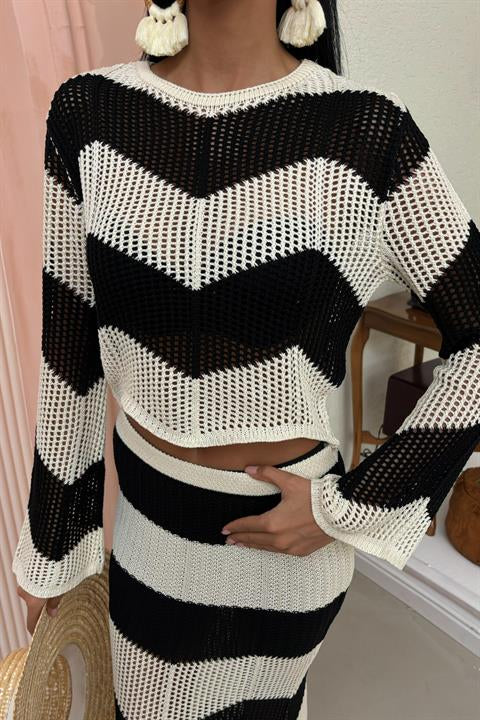 A Camisola Listrada Manga Espanhola é um toque de estilo clássico com um twist moderno. Em preto e branco, com listras em V que alongam a silhueta, esta peça é super elegante e cheia de personalidade. As mangas espanholetas trazem um ar descontraído e feminino, perfeito para criar um look chic sem esforço. Combina facilmente com calças, saias ou até um short para o verão. Estás pronta para arrasar com conforto e sofisticação! 🤍🖤✨