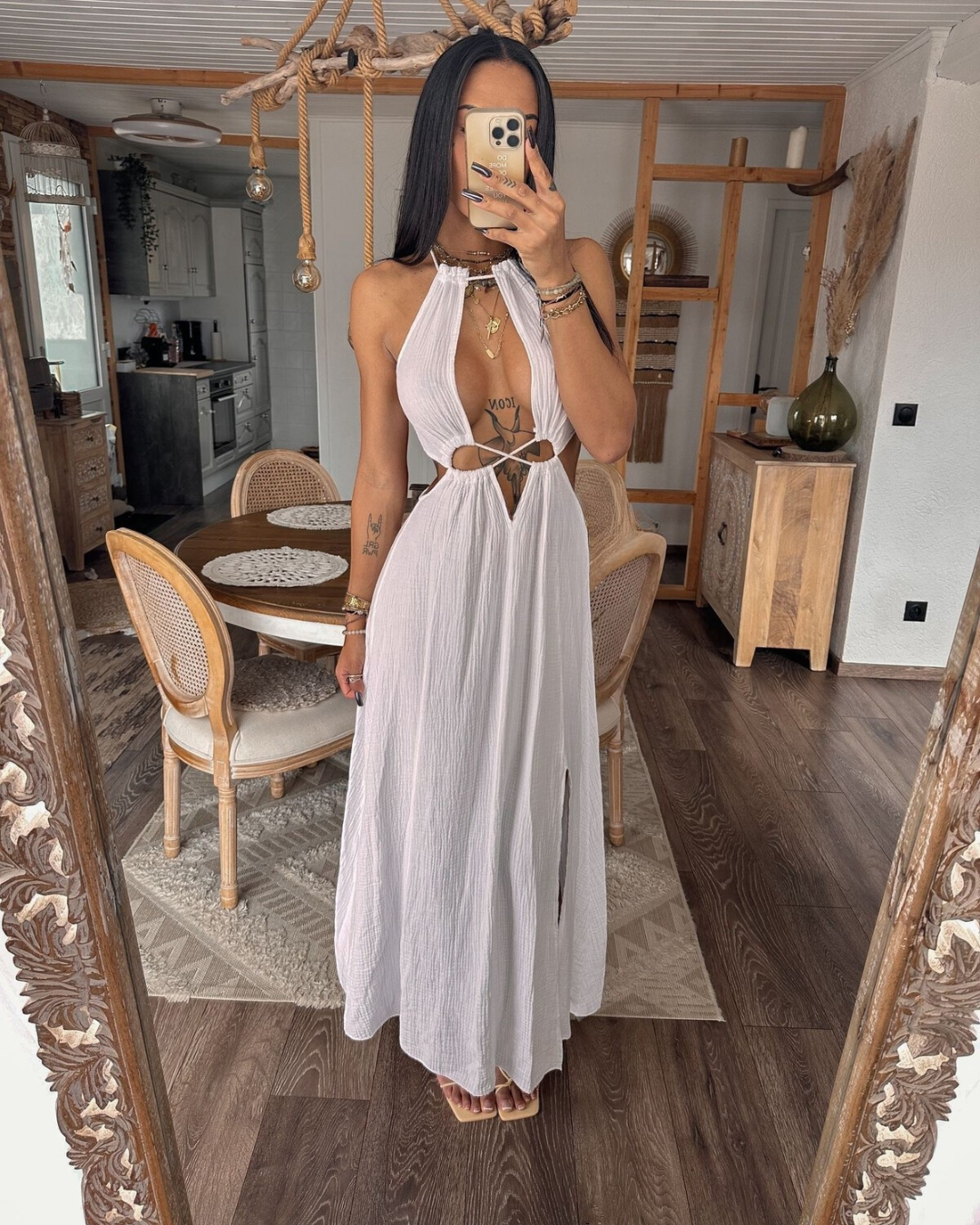 Elegância que flui com o vento! O vestido longo de chiffon é leve e sofisticado, ideal para eventos especiais ou uma noite de verão. Com seu tecido fluido e delicado, vai deixar-te com um look incrível e cheio de graça. Perfeito para quem ama um toque romântico e refinado.